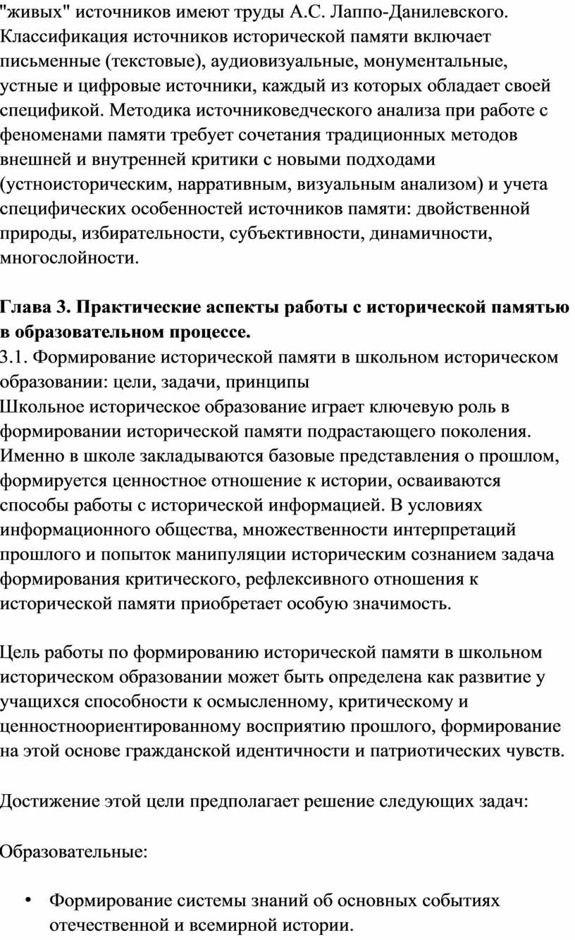 3.1. Формирование исторической памяти в школьном историческом образовании: цели, задачи, принципы.