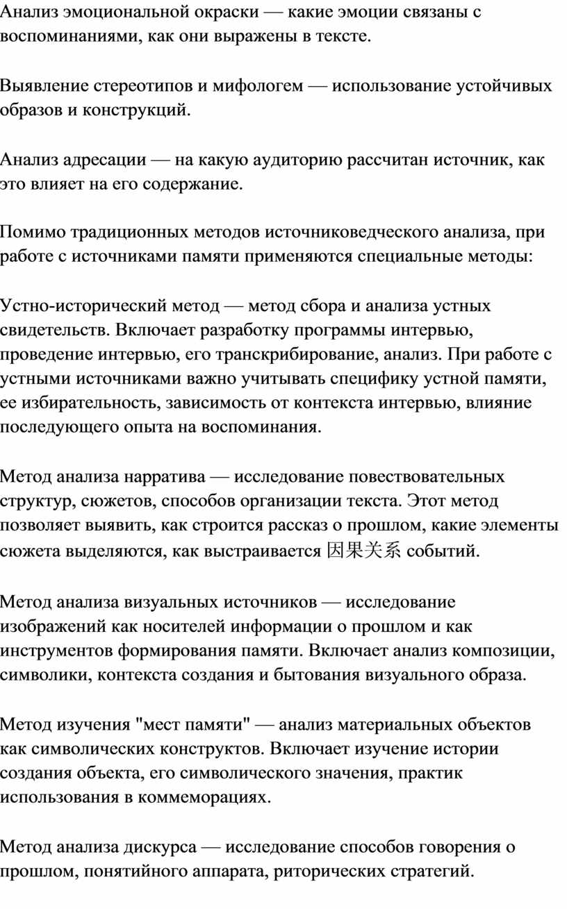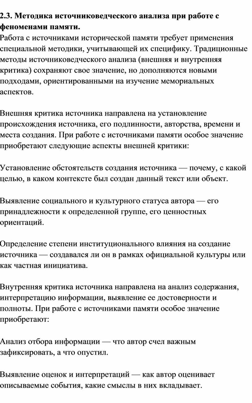 6. Охарактеризовать методику источниковедческого анализа при работе с феноменами памяти.