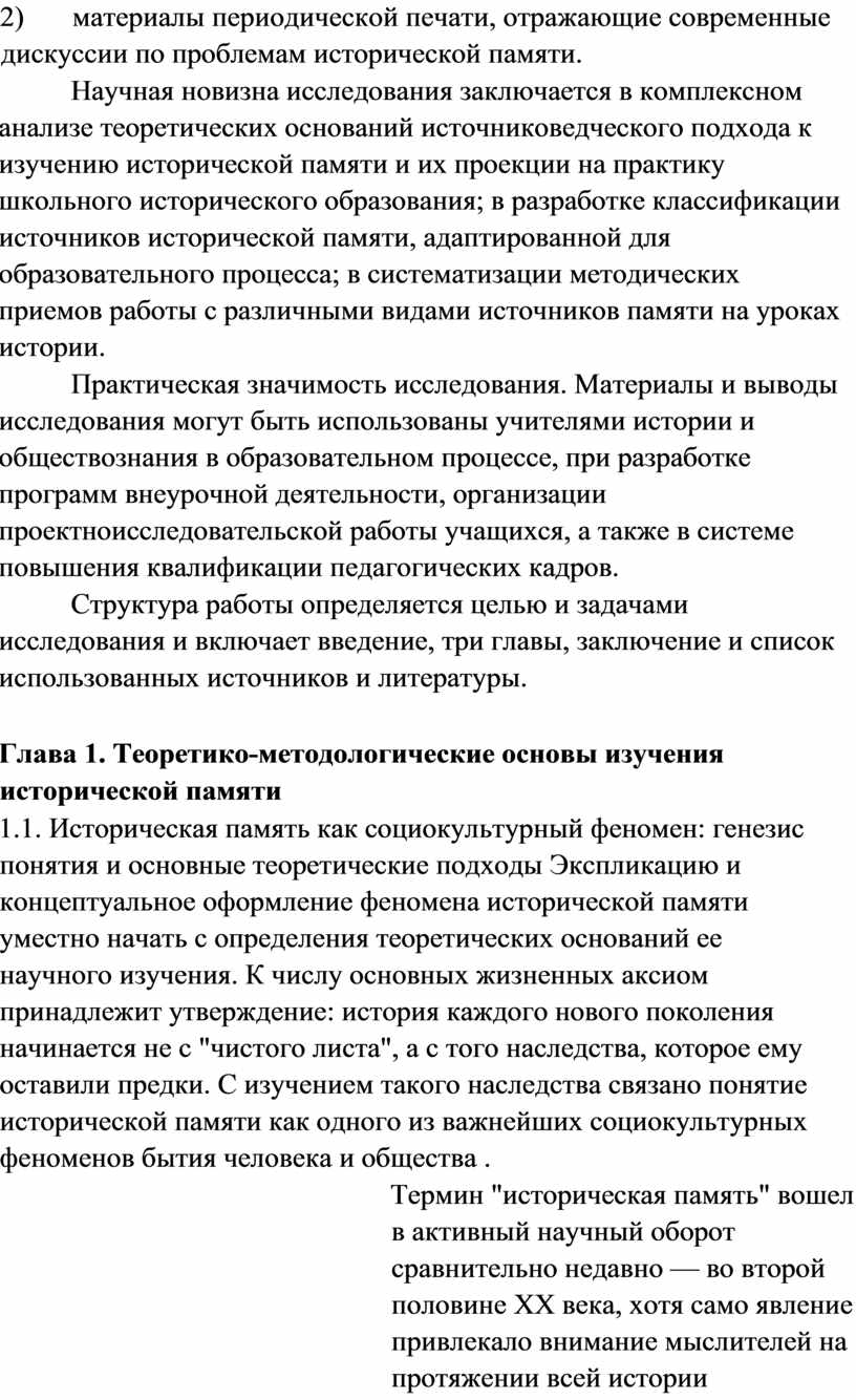 Глава 1. Теоретико-методологические основы изучения исторической памяти.