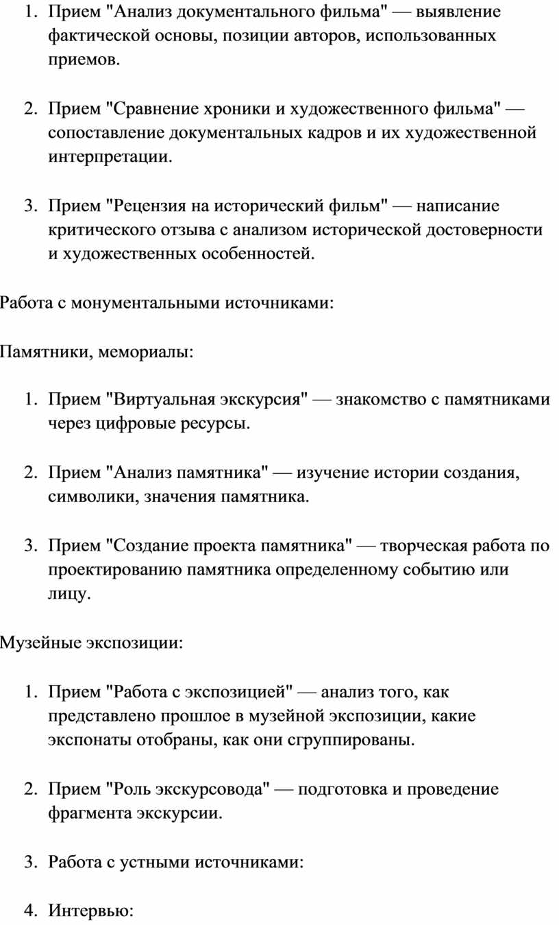 8. Предложить методический инструментарий работы с различными видами источников исторической памяти на уроках истории.