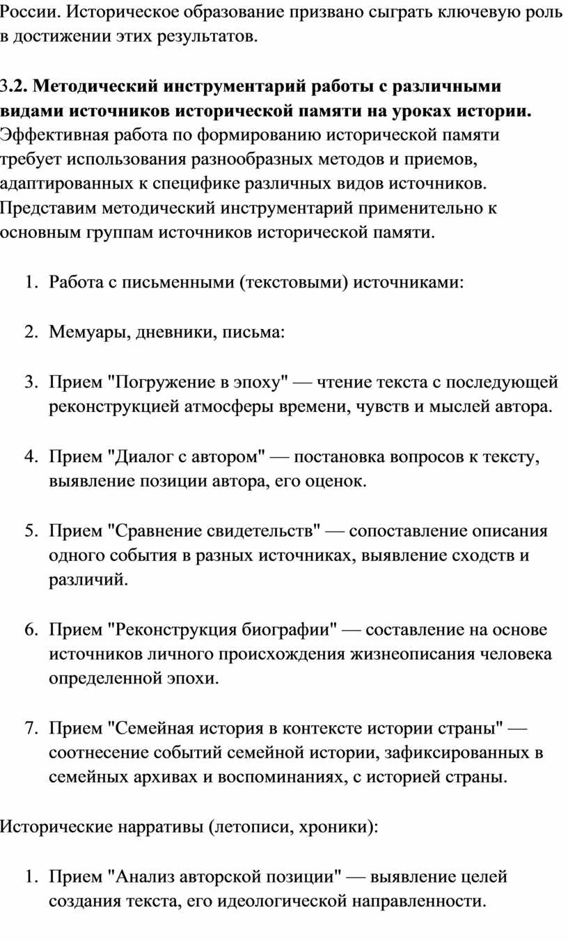 3.2. Методический инструментарий работы с различными видами источников исторической памяти на уроках истории.