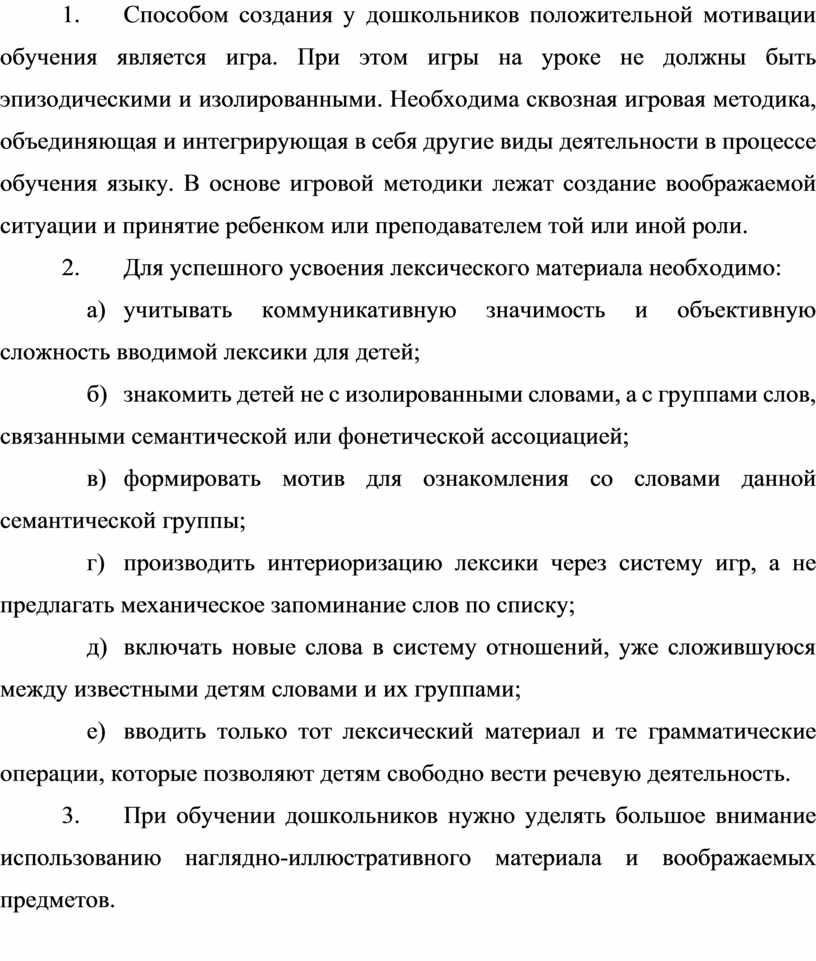 – вводимая лексика конкретной семантической группы должно быть мотивировано и вызвано коммуникативными потребностями (задачей) детей;