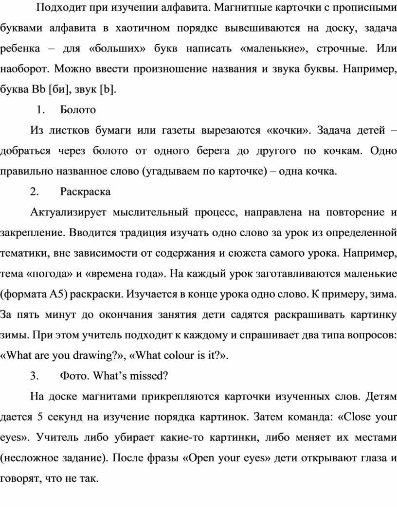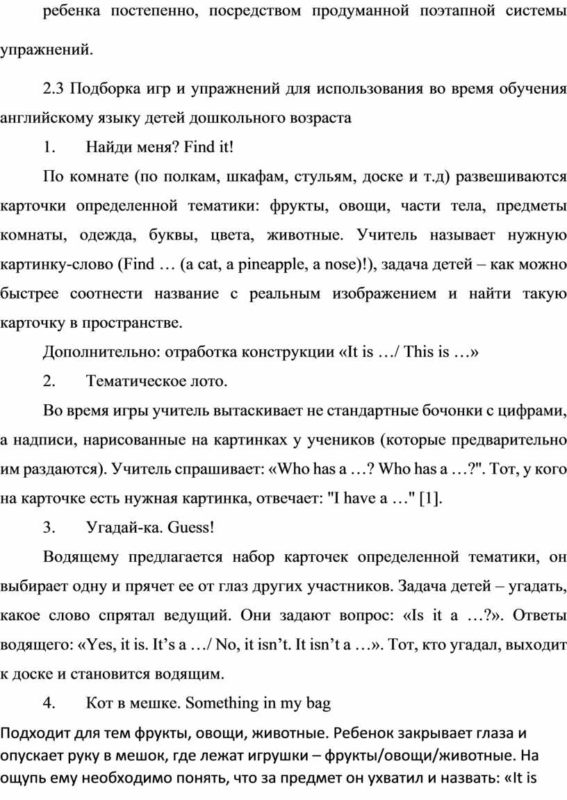 2.3 Подборка игр и упражнений для использования во время обучения английскому языку детей дошкольного возраста