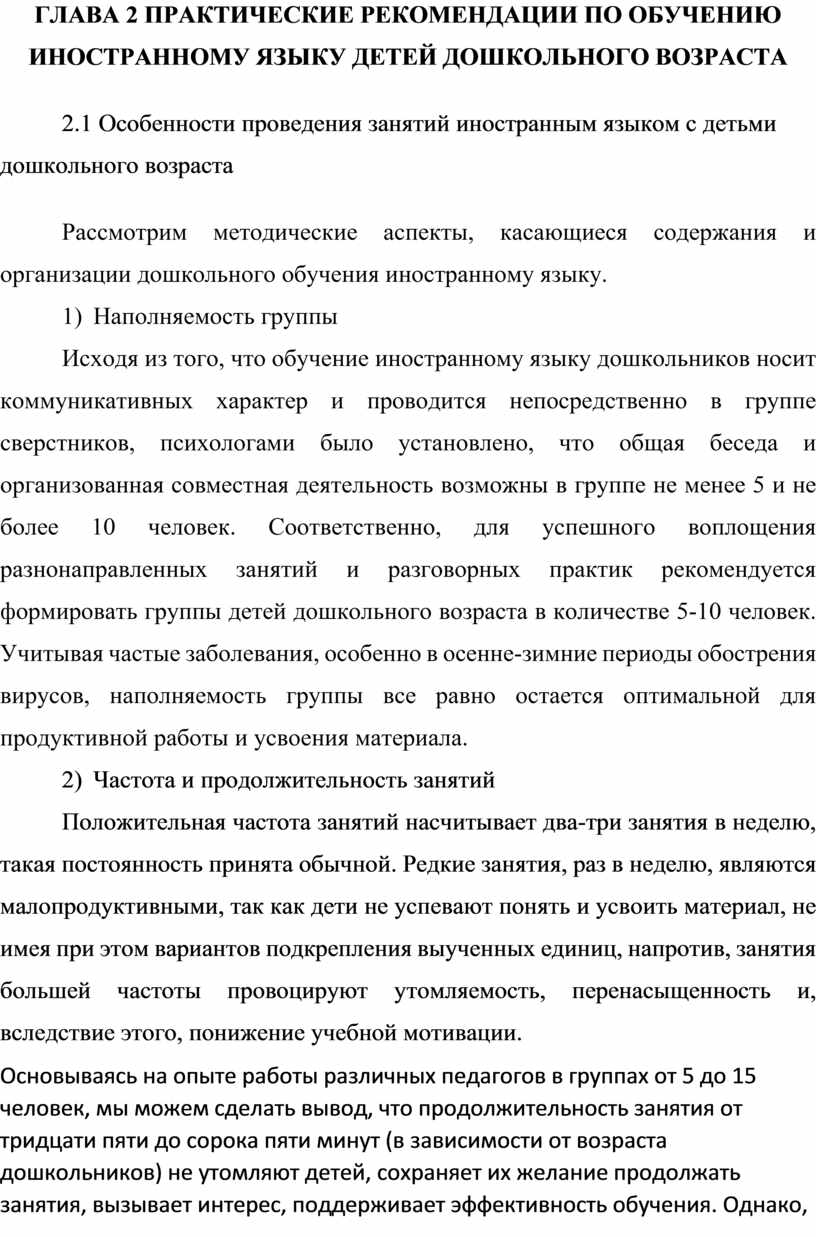 ГЛАВА 2 ПРАКТИЧЕСКИЕ РЕКОМЕНДАЦИИ ПО ОБУЧЕНИЮ ИНОСТРАННОМУ ЯЗЫКУ ДЕТЕЙ ДОШКОЛЬНОГО ВОЗРАСТА