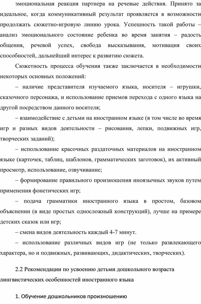 2.2 Рекомендации по усвоению детьми дошкольного возраста лингвистических особенностей иностранного языка