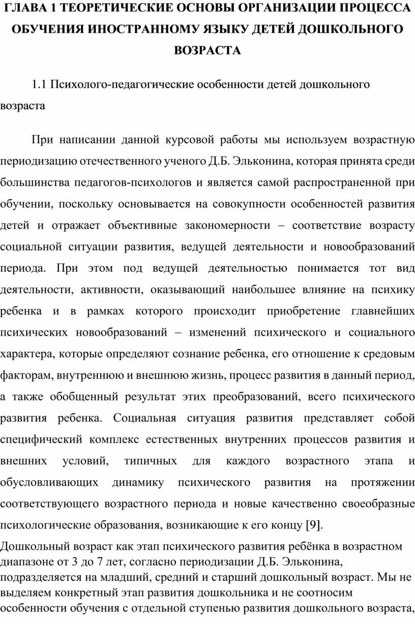 ГЛАВА 1 ТЕОРЕТИЧЕСКИЕ ОСНОВЫ ОРГАНИЗАЦИИ ПРОЦЕССА ОБУЧЕНИЯ ИНОСТРАННОМУ ЯЗЫКУ ДЕТЕЙ ДОШКОЛЬНОГО ВОЗРАСТА