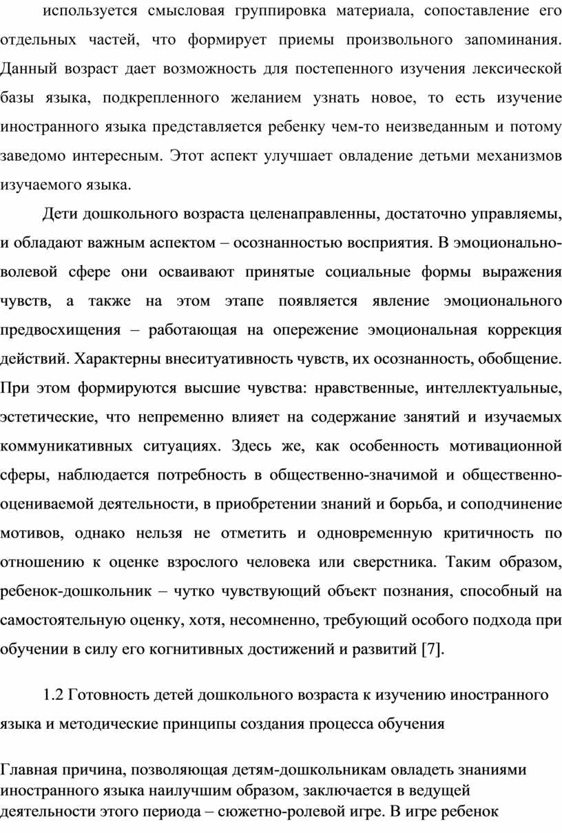1.2 Готовность детей дошкольного возраста к изучению иностранного языка и методические принципы создания процесса обучения