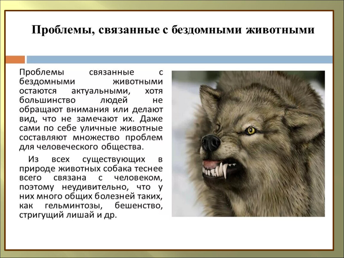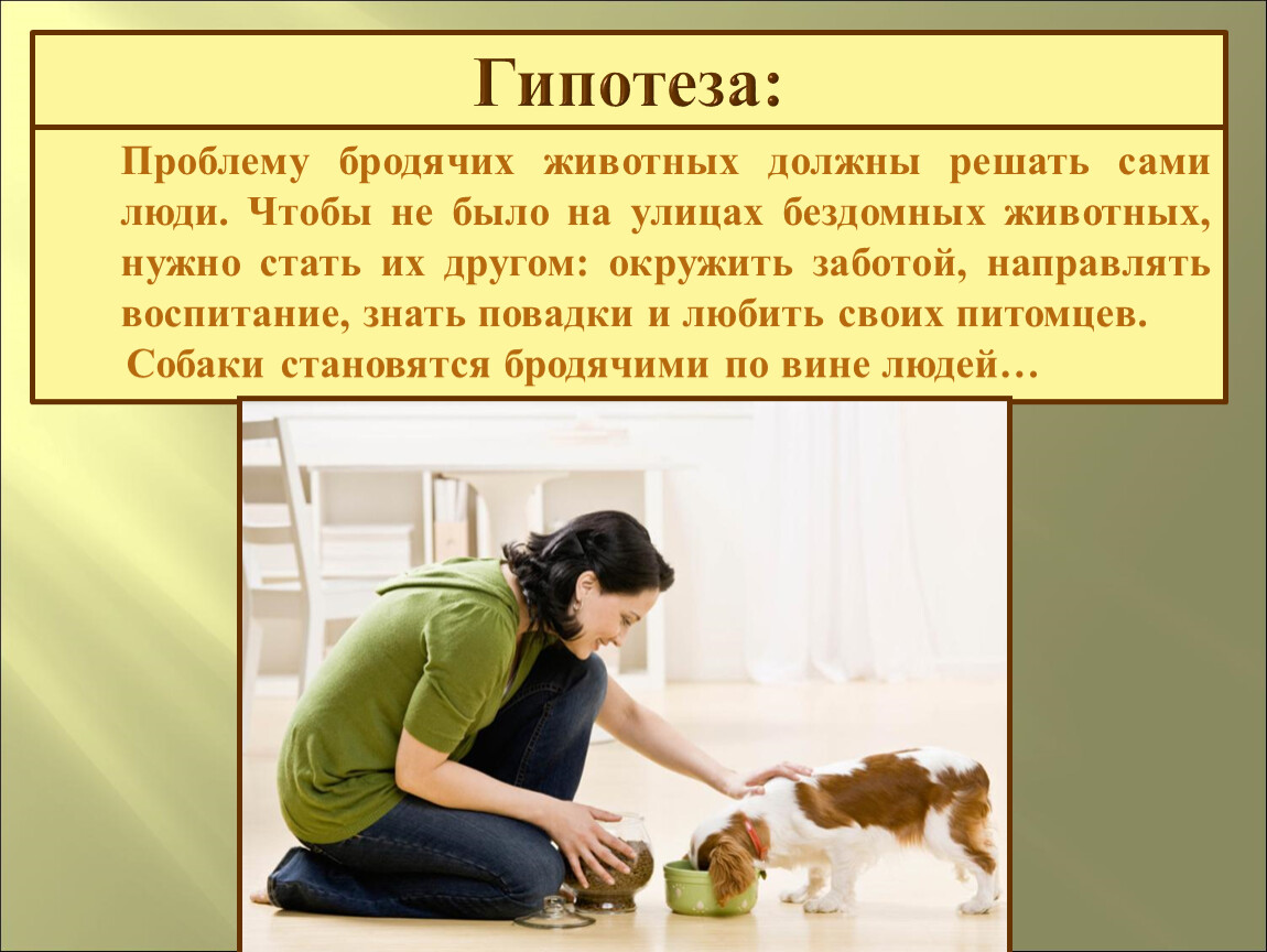 Проблему бродячих животных должны решать сами люди. Чтобы не было на улицах бездомных животных, нужно стать их другом: окружить заботой, направлять воспитание, знать повадки и любить своих питомцев.