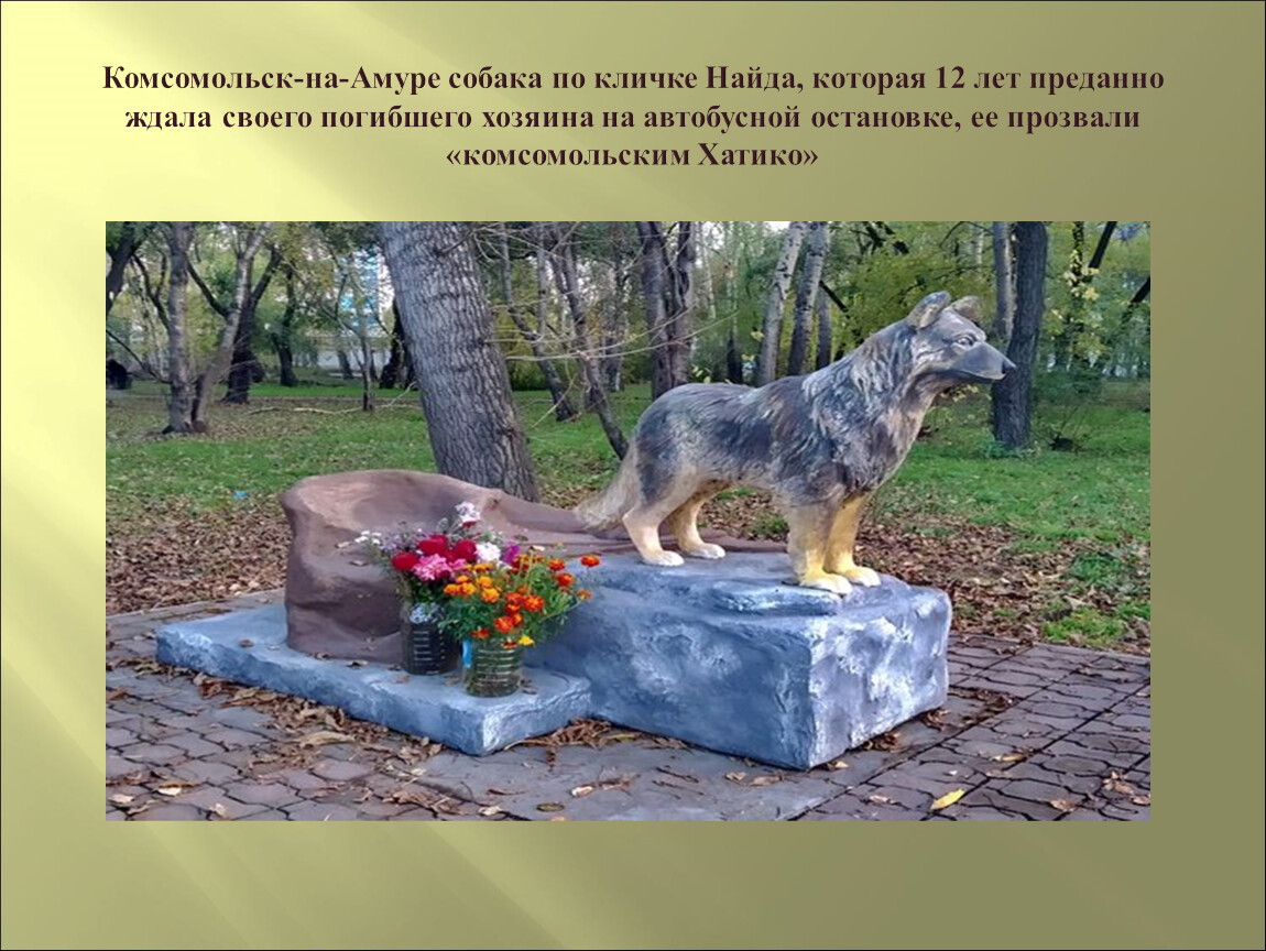 Комсомольск-на-Амуре собака по кличке Найда, которая 12 лет преданно ждала своего погибшего хозяина на автобусной остановке, ее прозвали «комсомольским Хатико»