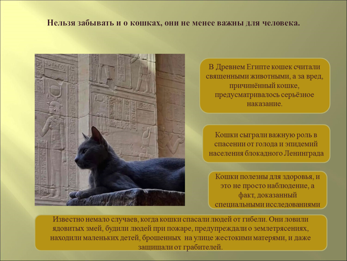 Нельзя забывать и о кошках, они не менее важны для человека.