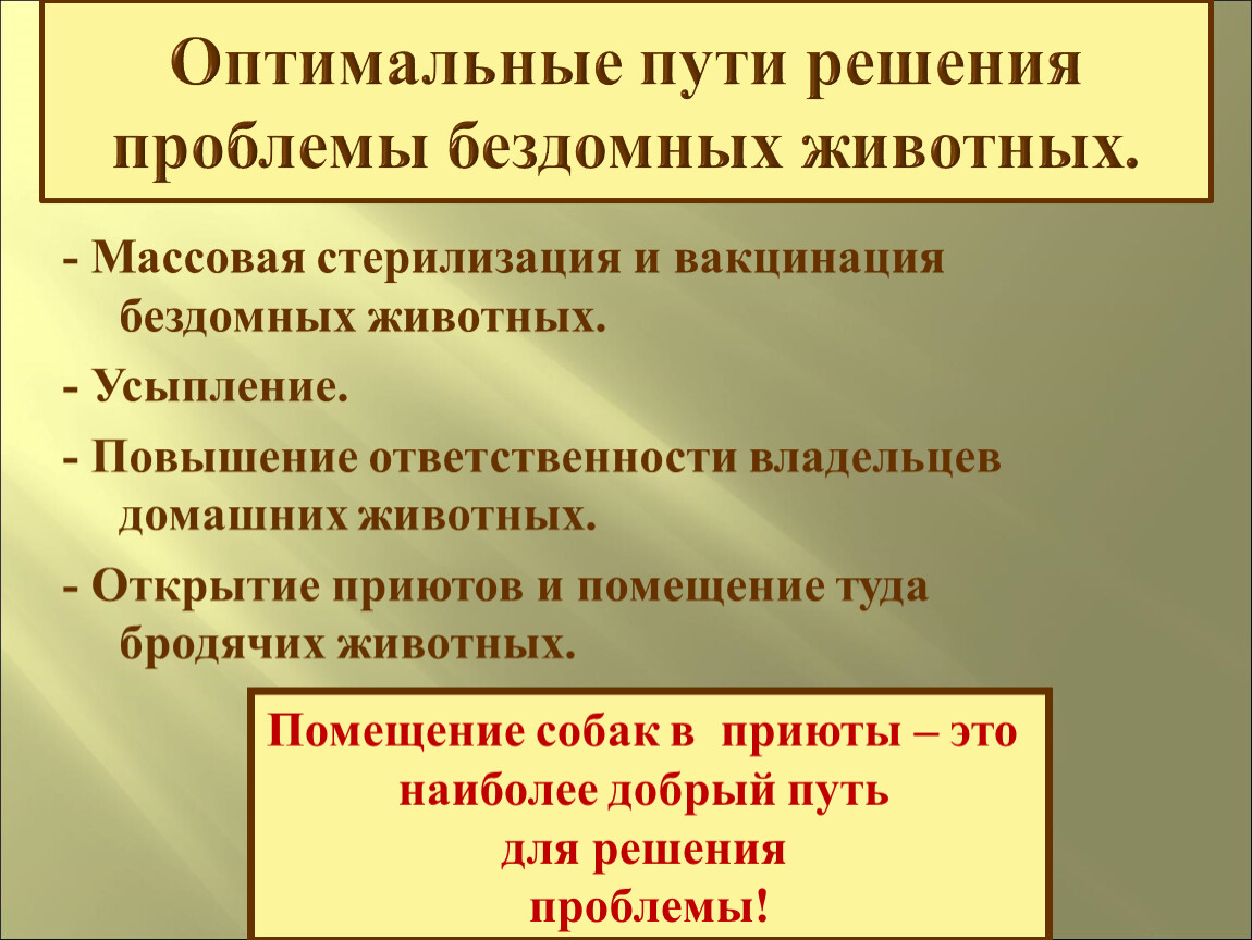 Оптимальные пути решения проблемы бездомных животных.