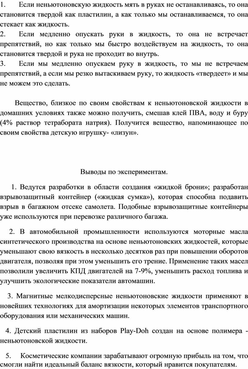 Моя работа посвящена исследованию свойств одного из интереснейших видов жидкостей - неньютоновской жидкости. Неньютоновская жидкость обладает рядом уникальных, присущих только ей свойств.
