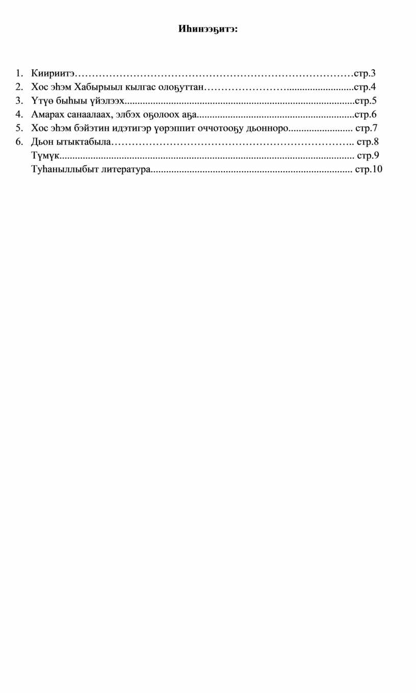 Туһаныллыбыт литература.............................................................................. стр.10