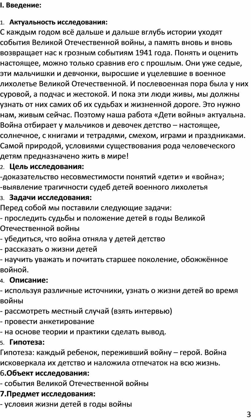 Гипотеза: каждый ребенок, переживший войну – герой. Война исковеркала их детство и наложила отпечаток на всю жизнь.