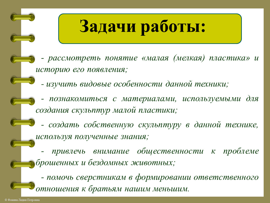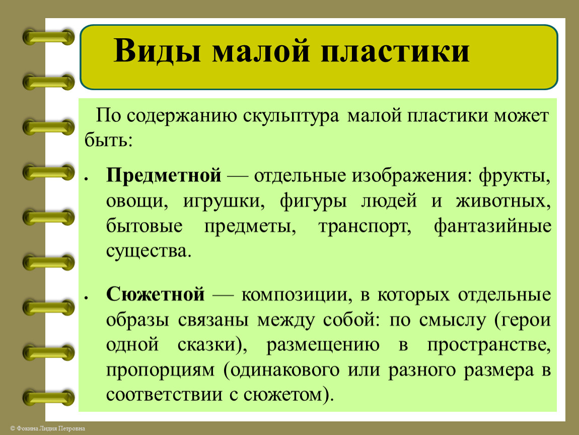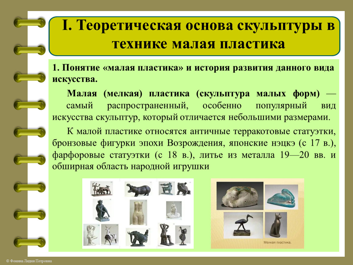 - рассмотреть понятие «малая (мелкая) пластика» и историю его появления;