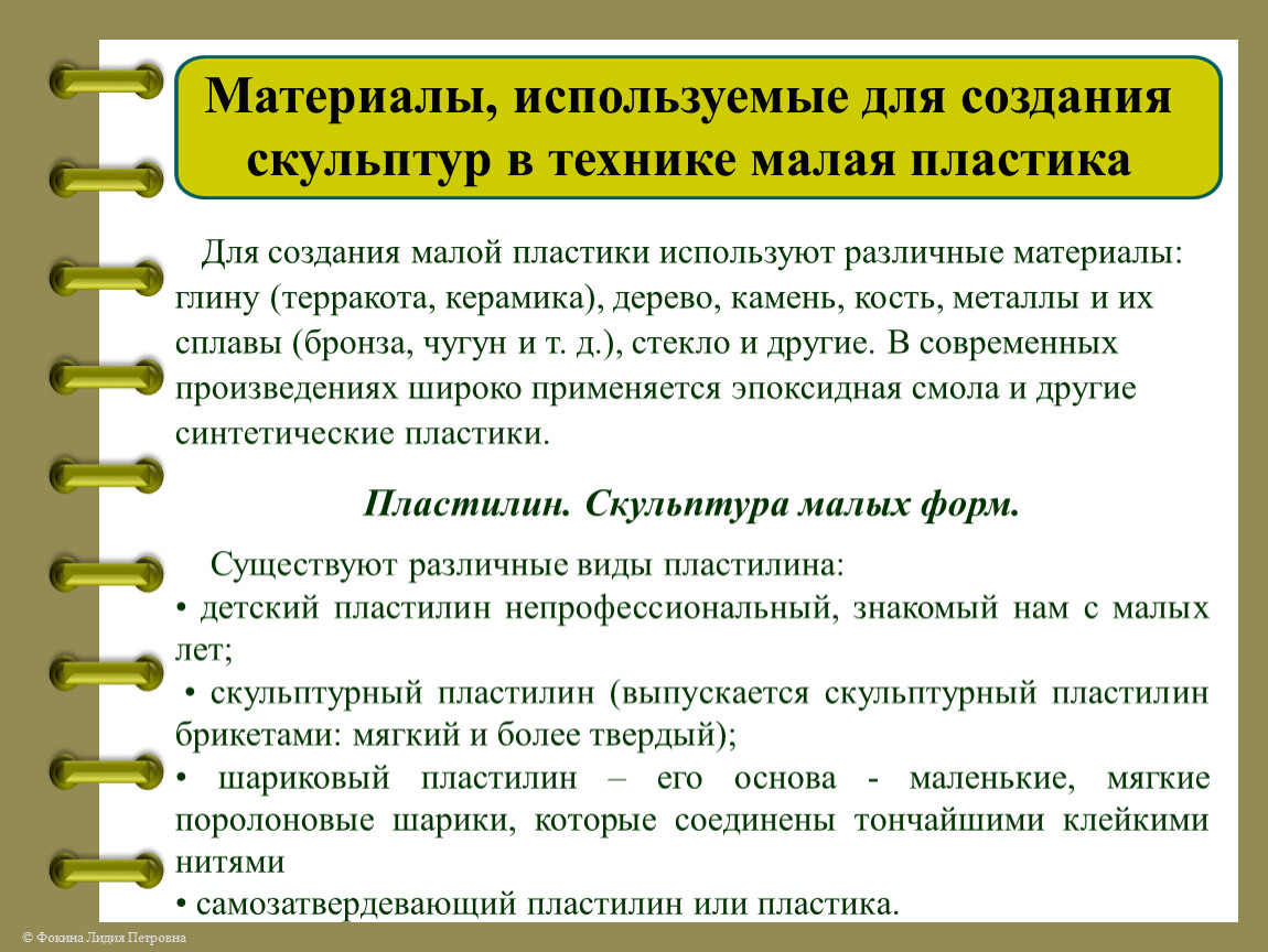 - познакомиться с материалами, используемыми для создания скульптур малой пластики;