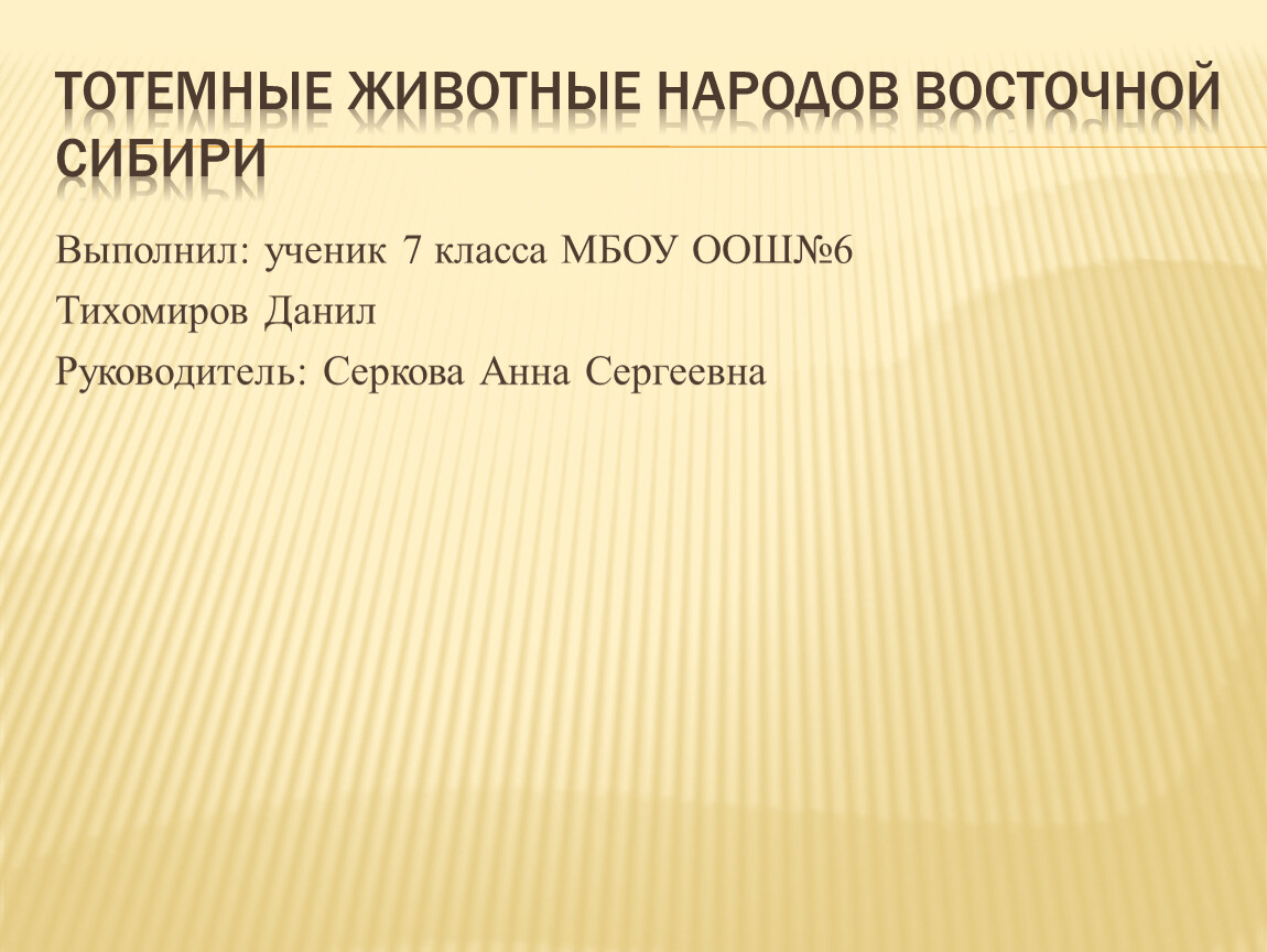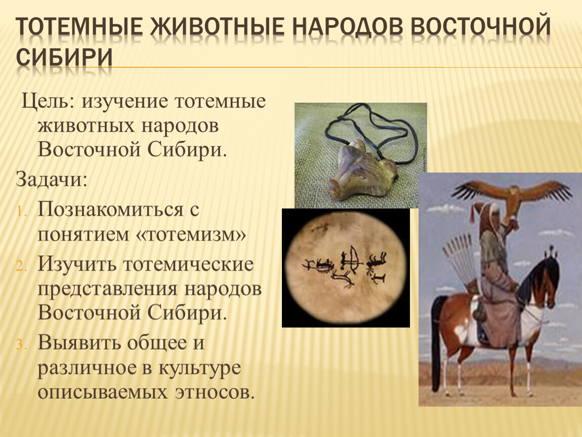 Цель: изучение тотемные животных народов Восточной Сибири.