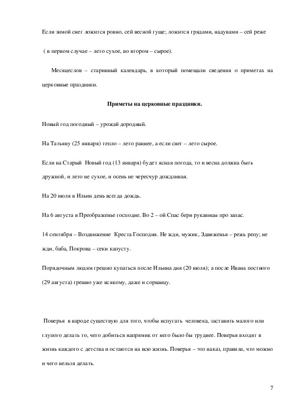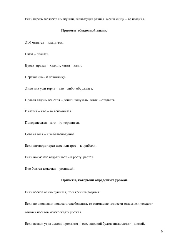 года и месяцам), приметы обыденной жизни, приметы на церковные праздники, приметы