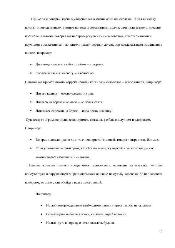 14Приметы и поверья крепко укоренились в жизни моих односельчан. Хотя на смену