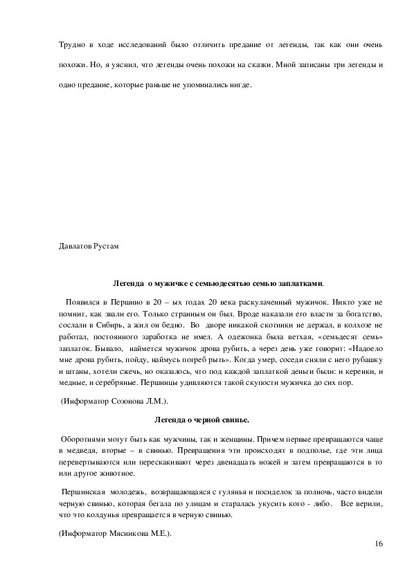15Трудно в ходе исследований было отличить предание от легенды, так как они очень