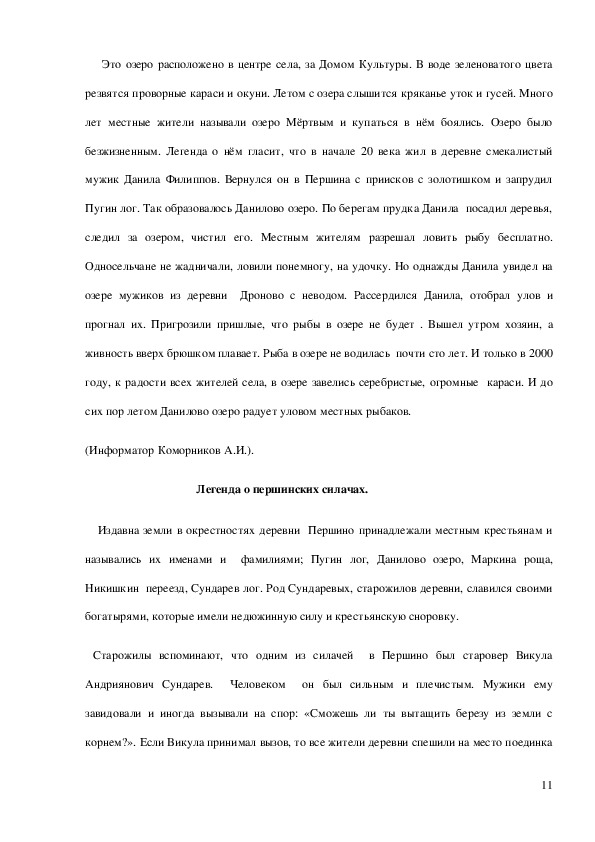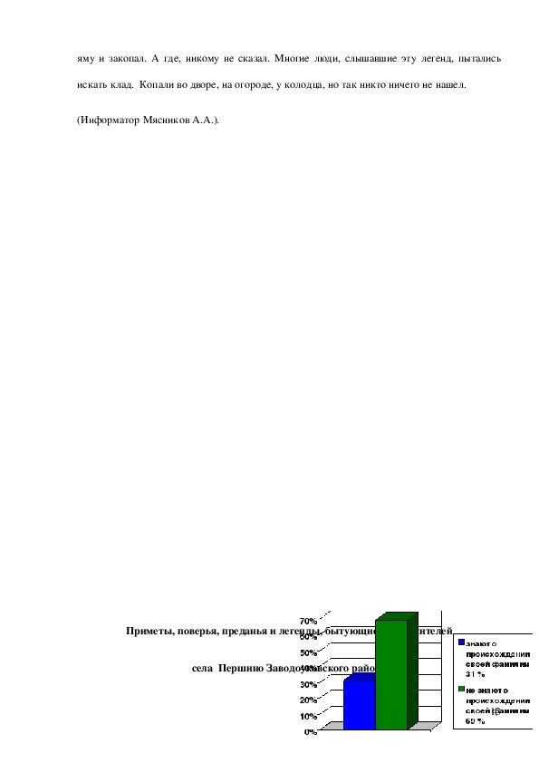 материал: приметы, поверья, предания и легенды жителей села Першино. Мной записаны