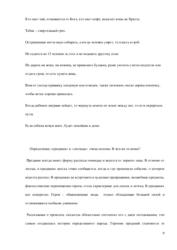 Приметы, поверья, преданья и легенды, бытующие среди жителей