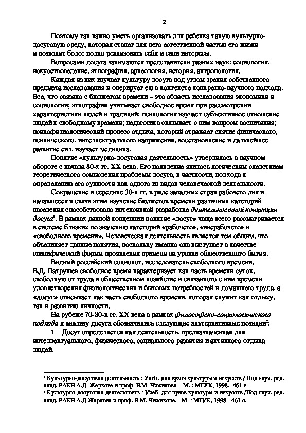 11. Жарков, А. Д. Культурнодосуговая деятельность как самостоятельная