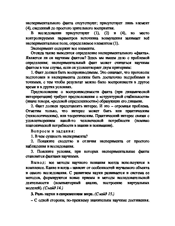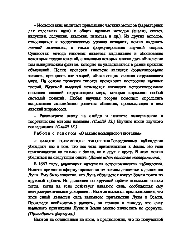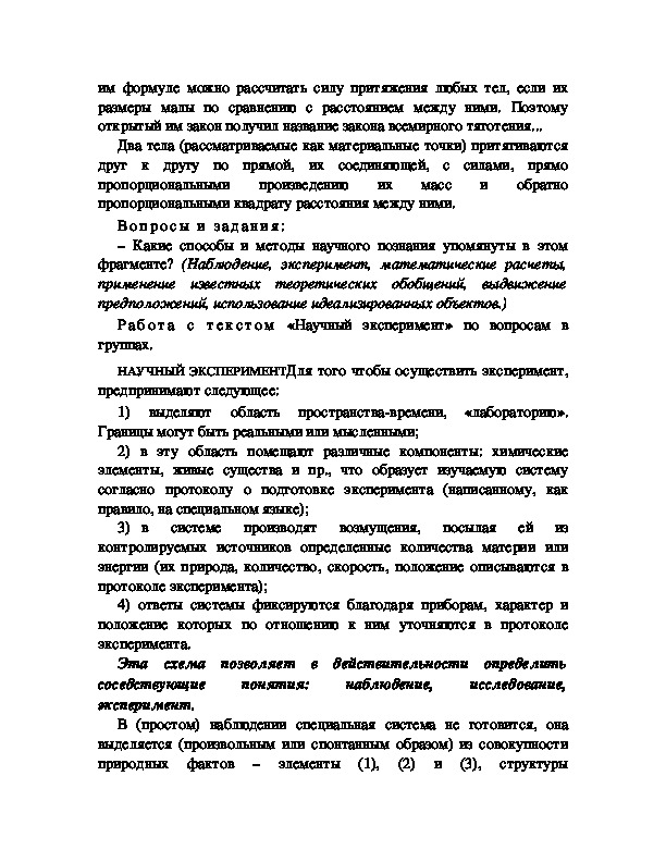 тяготения» и «Научный эксперимент», ответы на вопросы о методах