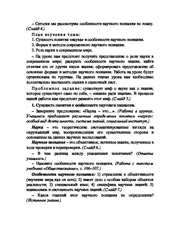 џ Раскрытие сущности понятий «наука» и «научное познание»: