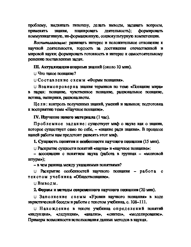 НАУЧНОЕ ПОЗНАНИЕТип урока: комбинированный.