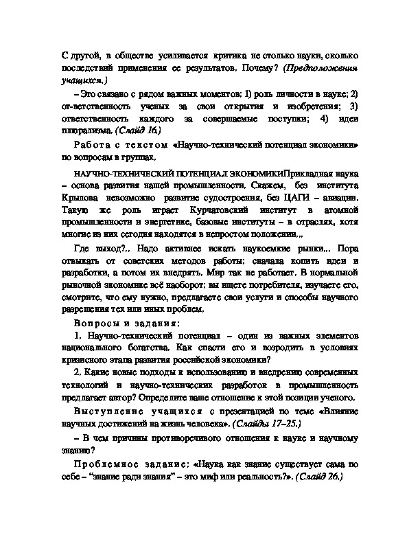 научных достижений на жизнь человека». (Слайды 17–25.)