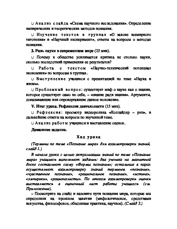 џ Раскрытие особенностей научного познания – р а б о т а с