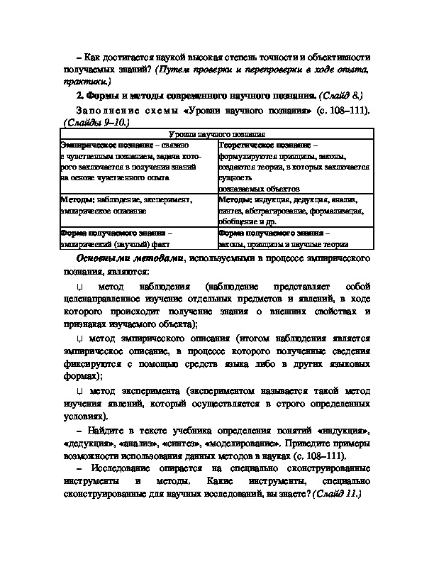 џ З а п о л н е н и е с х е м ы «Уровни научного познания» в ходе