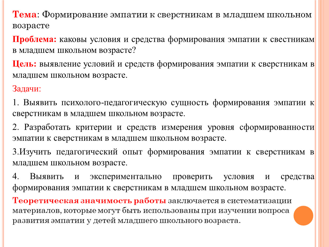 Теоретическая значимость работы заключается в систематизации материалов, которые могут быть использованы при изучении вопроса рaзвития эмпатии у детей младшего школьного возраста.