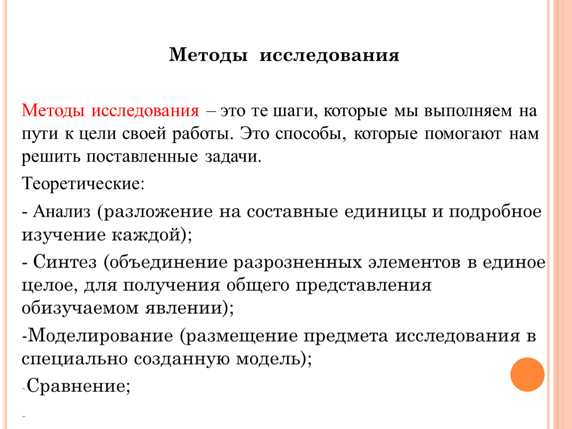 Методы исследования – это те шаги, которые мы выполняем на пути к цели своей работы. Это способы, которые помогают нам решить поставленные задачи.