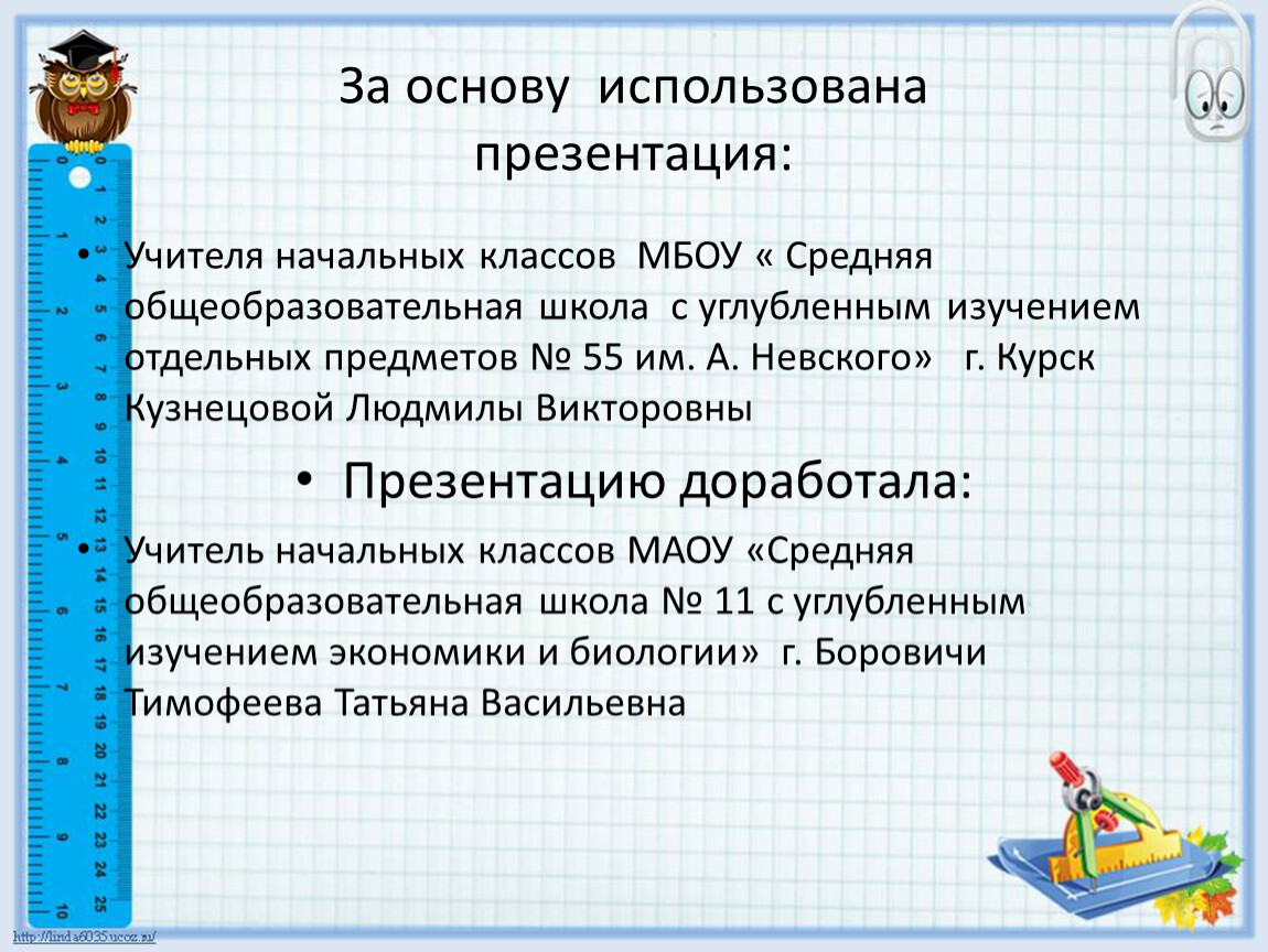 Учителя начальных классов МБОУ « Средняя общеобразовательная школа с углубленным изучением отдельных предметов № 55 им. А. Невского» г. Курск Кузнецовой Людмилы Викторовны