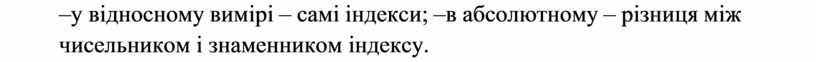 –у відносному вимірі – самі індекси; –в абсолютному – різниця між чисельником і знаменником індексу.