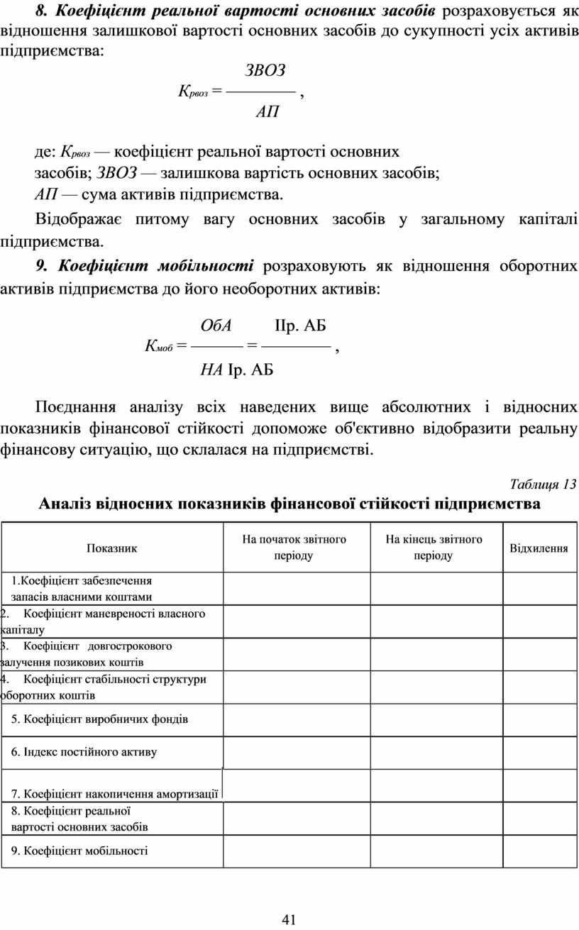 де: Крвоз — коефіцієнт реальної вартості основних засобів; ЗВОЗ — залишкова вартість основних засобів; АП — сума активів підприємства.