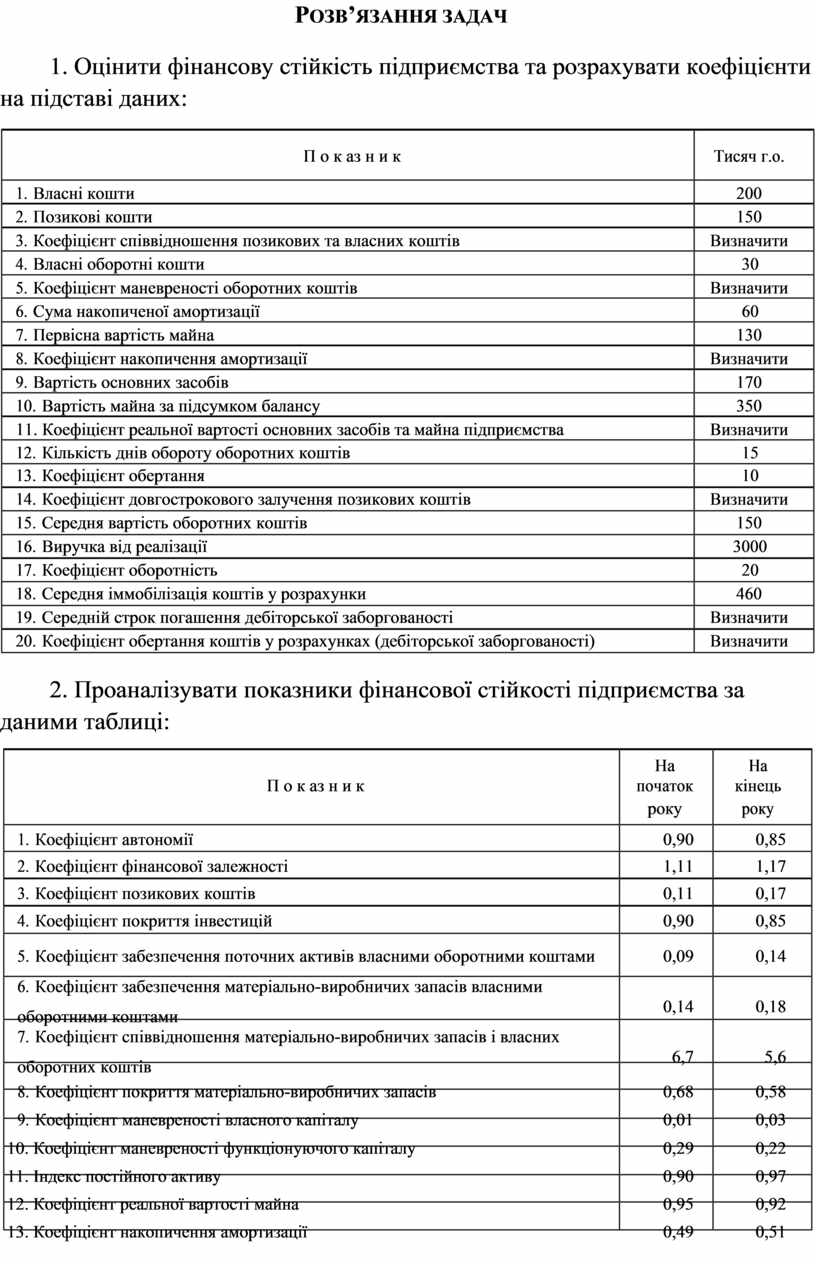 2. Проаналізувати показники фінансової стійкості підприємства за даними таблиці: