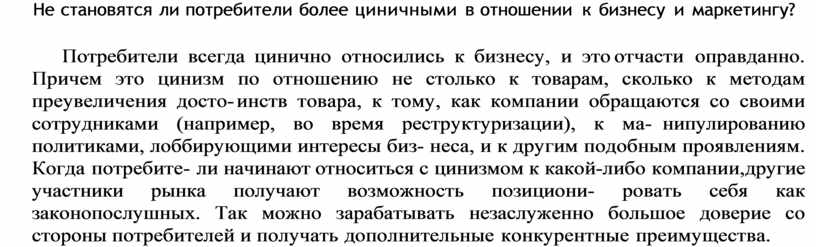 Не становятся ли потребители более циничными в отношении к бизнесу и маркетингу?