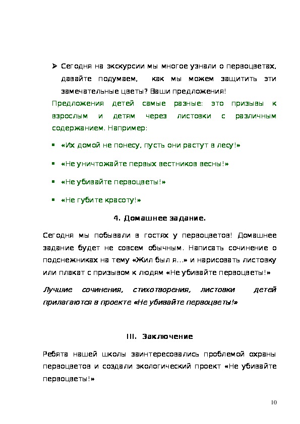 подснежниках на тему «Жил был я…» и нарисовать листовку