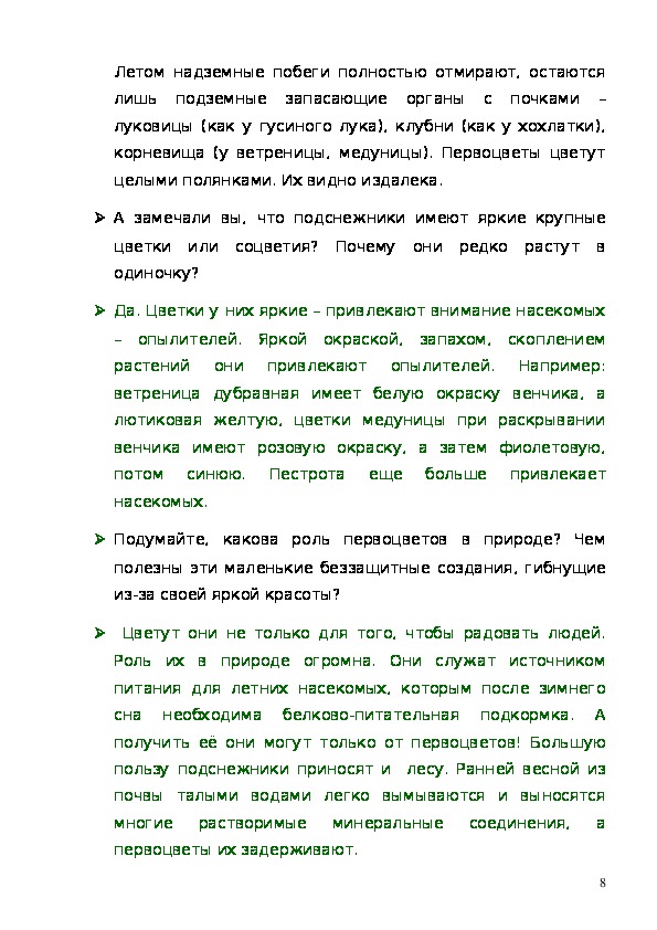 В первую очередь – пищевые цепи питания. Первоцветы –