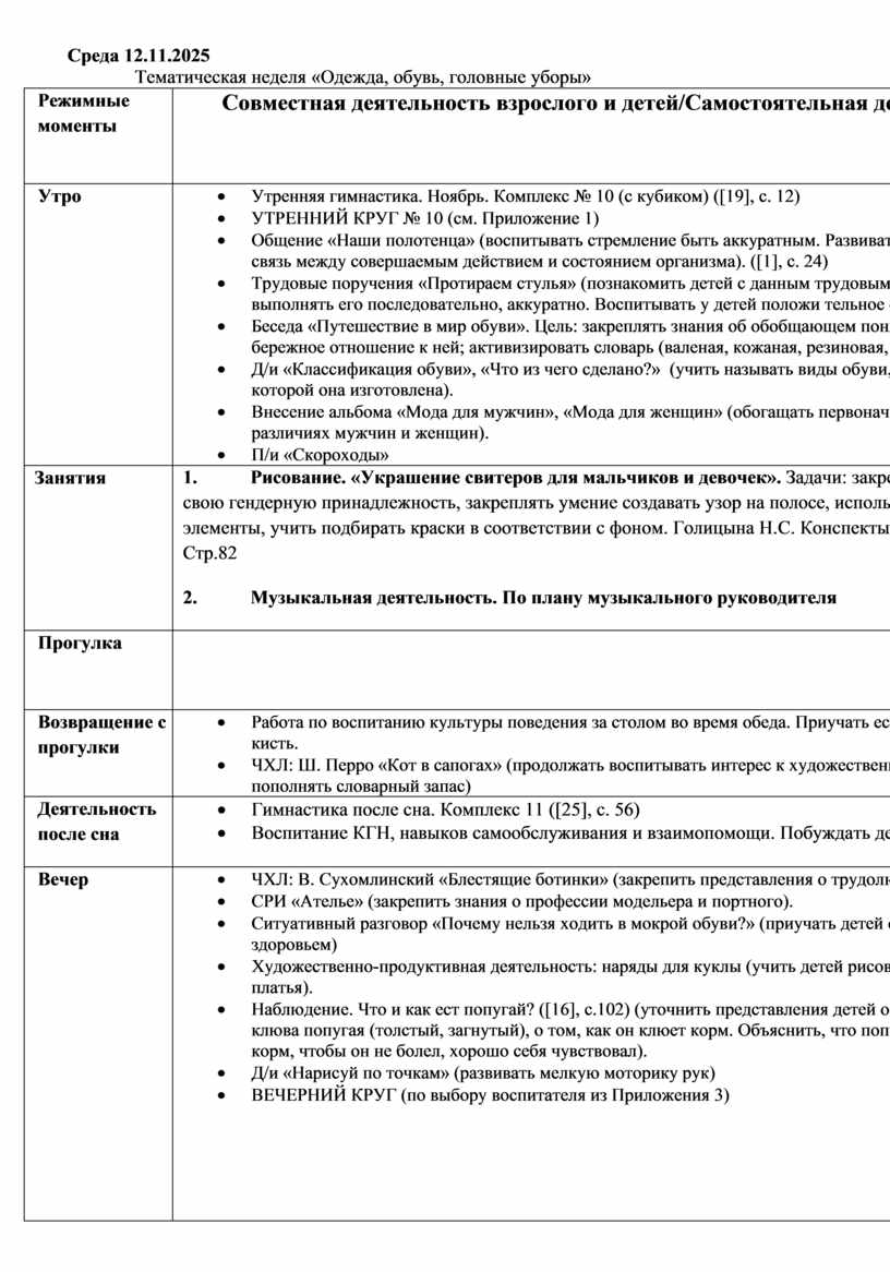 Среда 12.11.2025 Тематическая неделя «Одежда, обувь, головные уборы»