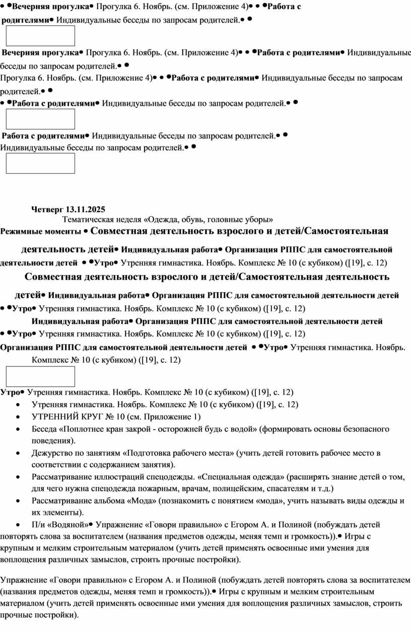 Четверг 13.11.2025 Тематическая неделя «Одежда, обувь, головные уборы»
