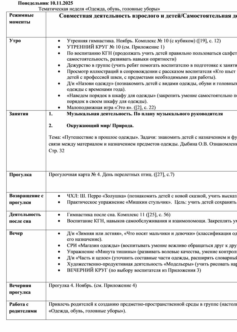Понедельник 10.11.2025 Тематическая неделя «Одежда, обувь, головные уборы»