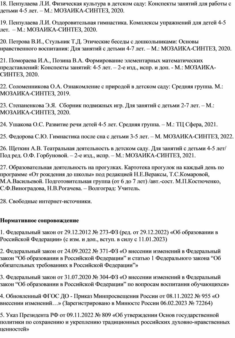 18. Пензулаева Л.И. Физическая культура в детском саду: Конспекты занятий для работы с детьми 4-5 лет. – М.: МОЗАИКА-СИНТЕЗ, 2020.