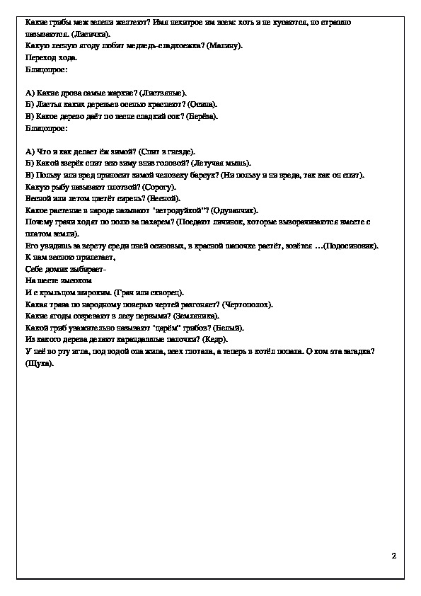 В) Пользу или вред приносит зимой человеку барсук? (Ни пользу и ни вреда, так как он спит).