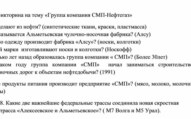 Викторина на тему «Группа компания СМП-Нефтегаз»