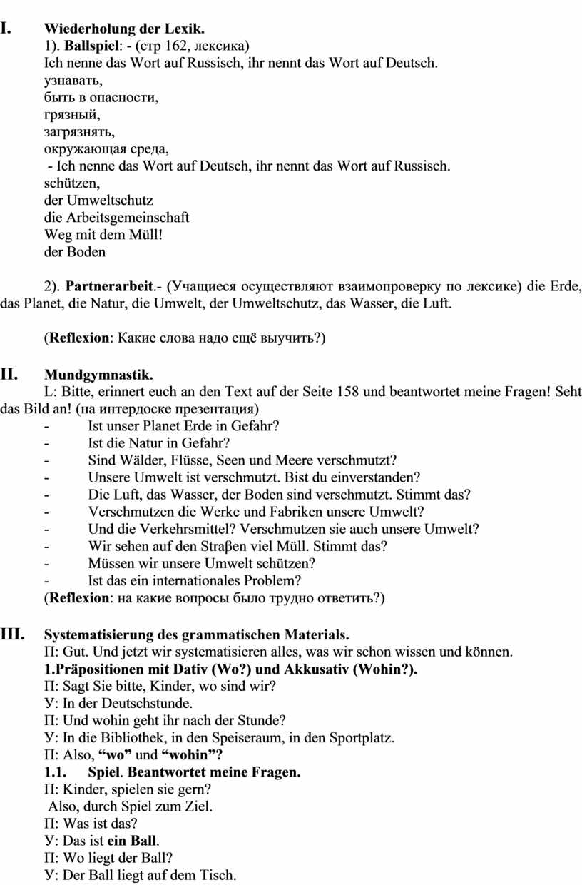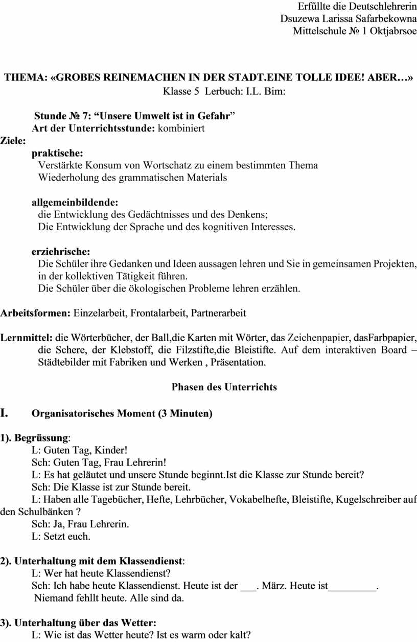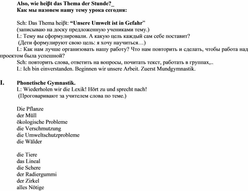 Stunde № 7: “Unsere Umwelt ist in Gefahr”