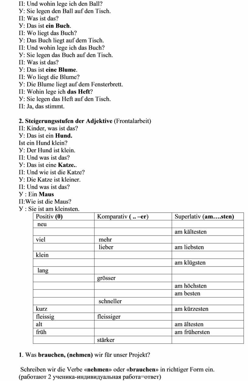1. Was brauchen, (nehmen) wir für unser Projekt?